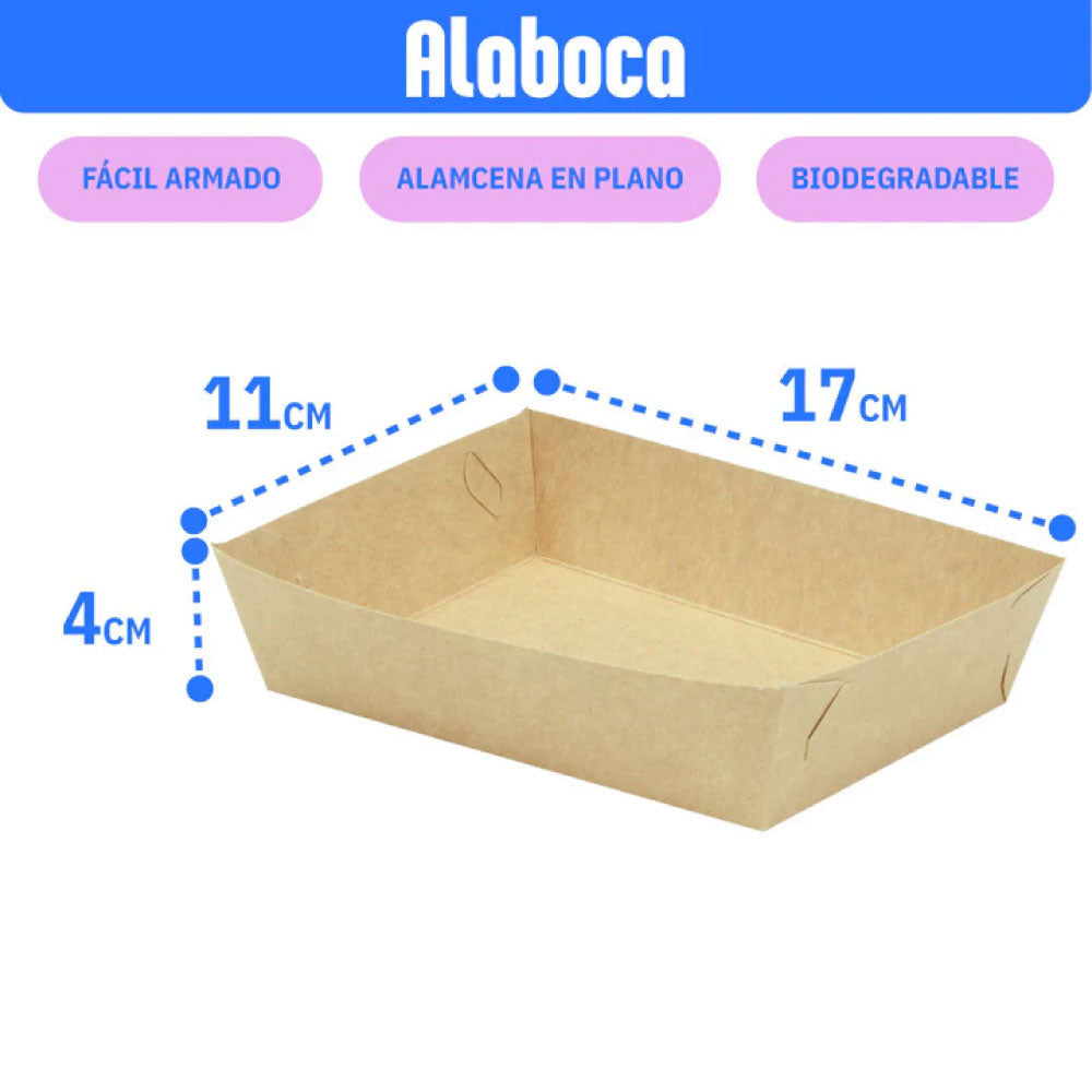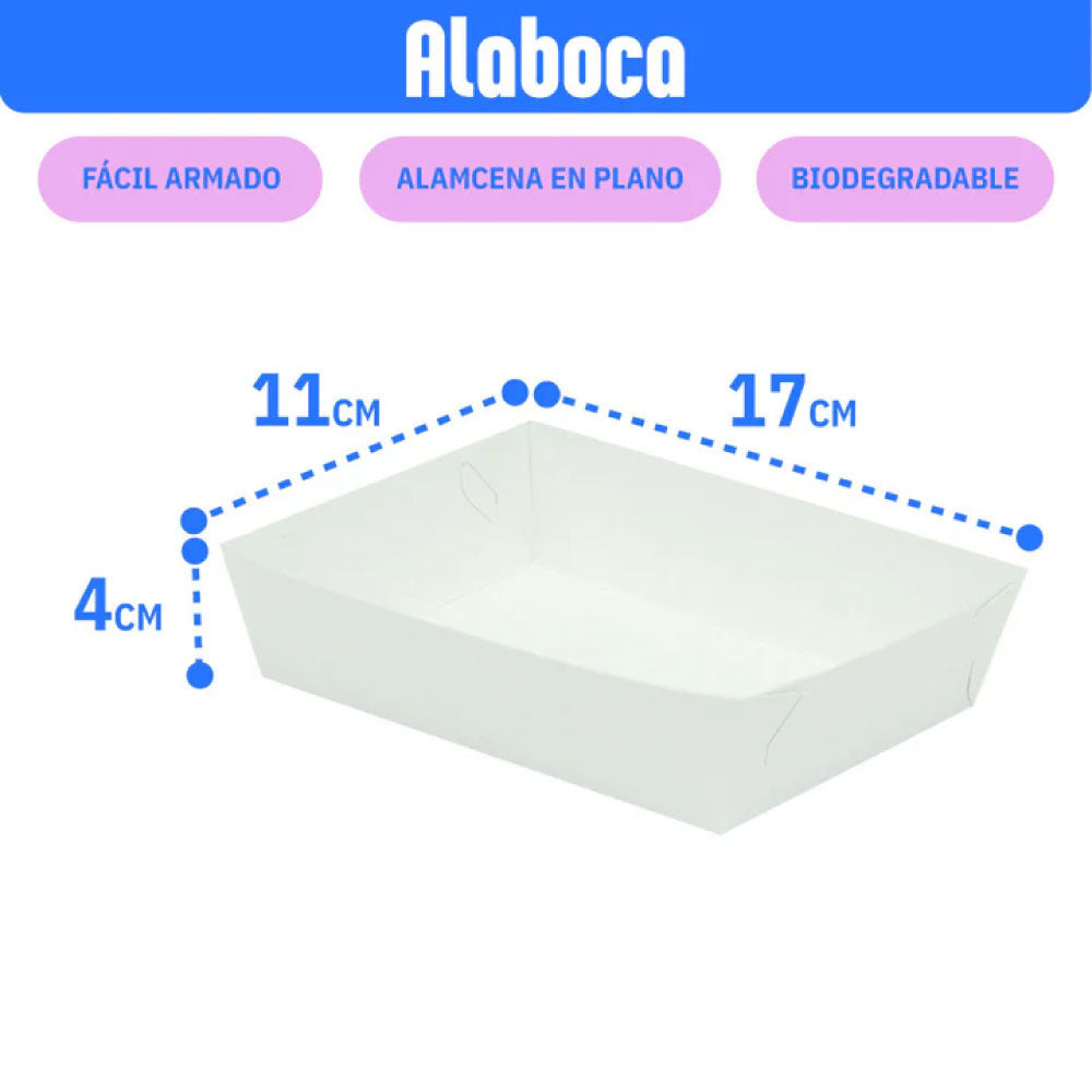 Descubre la solución perfecta para servir tus botanas favoritas con nuestra Charola de Cartón de 11x17x4cm, diseñada específicamente para nachos, pero también ideal para una amplia gama de alimentos como alitas, boneless, papas fritas y tacos. Esta charola es un elemento indispensable para cualquier panadería, pastelería, cafetería, o evento social como bodas, baby showers, cumpleaños, graduaciones y fiestas, ofreciendo una presentación elegante y práctica en tu mesa de dulces o como plato botanero.